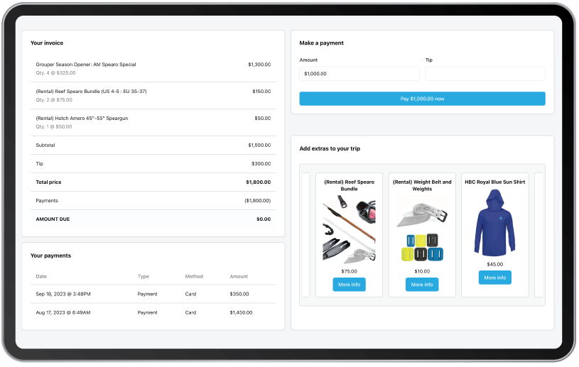 Offer experiences that appeal to any customer at any price point - private charters, shared trips, classes, special events, and more. Boost your conversions and revenue with our flexible scheduling, pricing, and vehicle options.